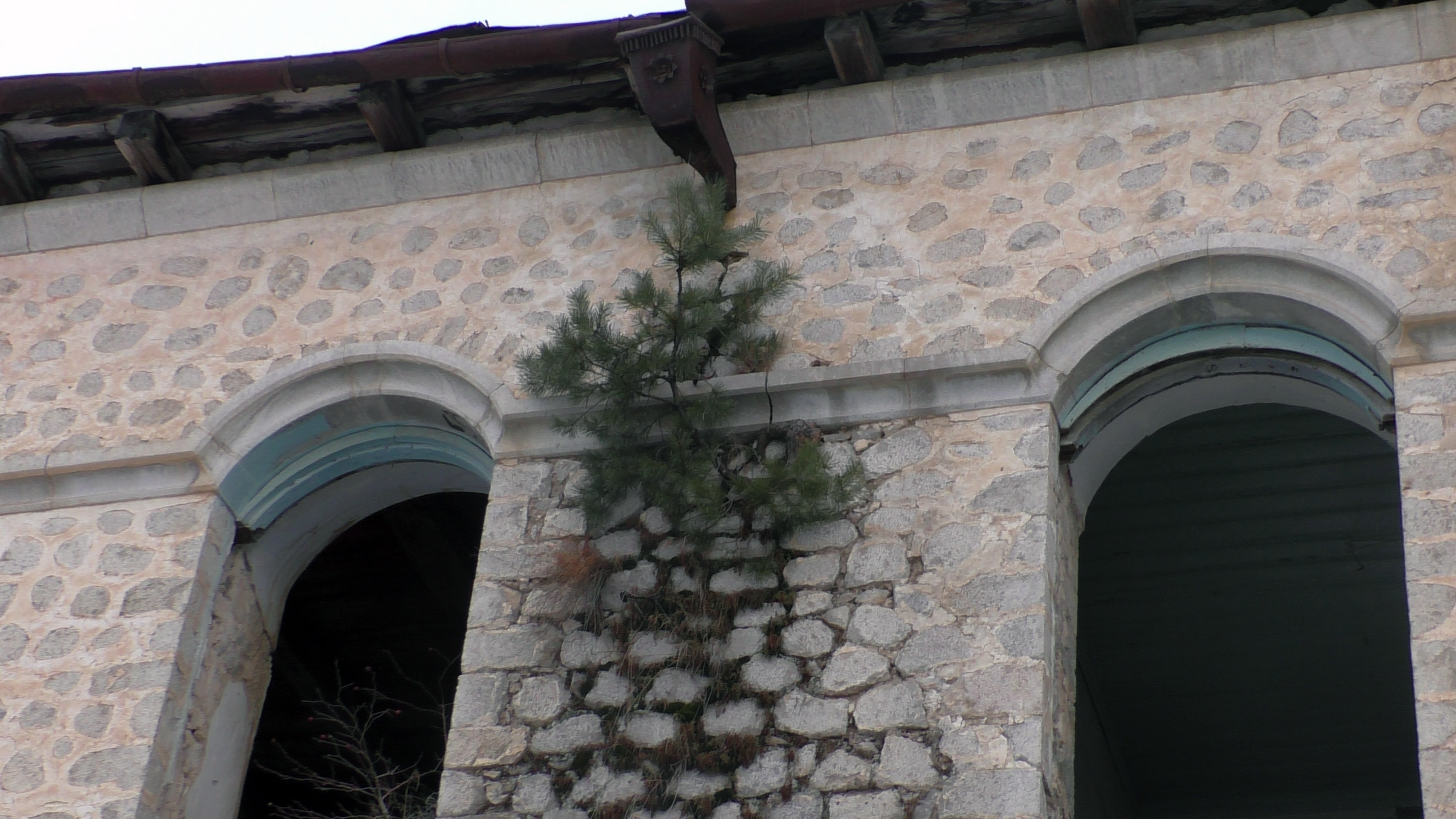 Елка выросла на стене дома Жамгарянов, видимо, не в курсе, что новый год закончился, растет себе дальше