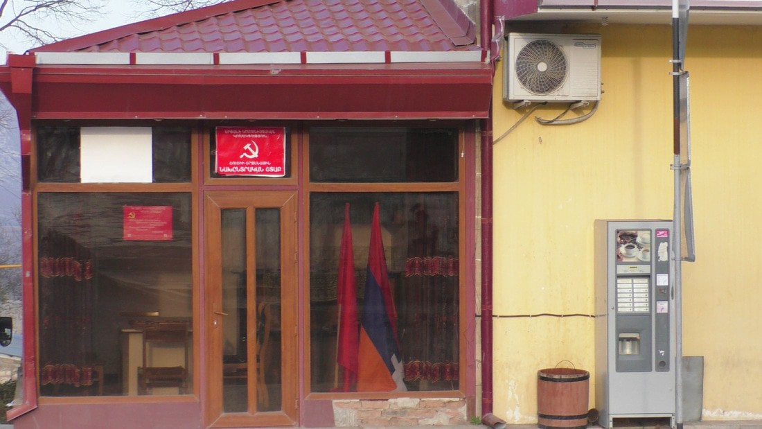 Рядом офис партии Самвела Бабаяна. Вообще, снимая в Шуши баннеры, я заметил, что их баннеры почти на всех зданиях. неудивительно, ведь Шуши во многом еще остался в 1995 году. Еще покажу, о чем я говорю, но тут вместо фото, поставлю видео, посмотрите, где растет елка, оно стоит всех фото вместе взятых и заодно увидите офис партии Самвела Бабаяна.