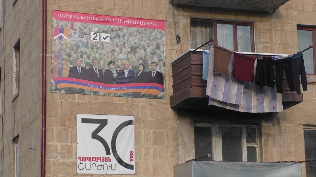 То же самое здание сбоку, партия Масиса Маиляна и Самвела Бабаяна. Самвел Бабаян, хоть и поддержал кандидатуру Масиса Маиляна, но у него своя партия. Как говорят русские, дружба дружбой, а табачок врозь.