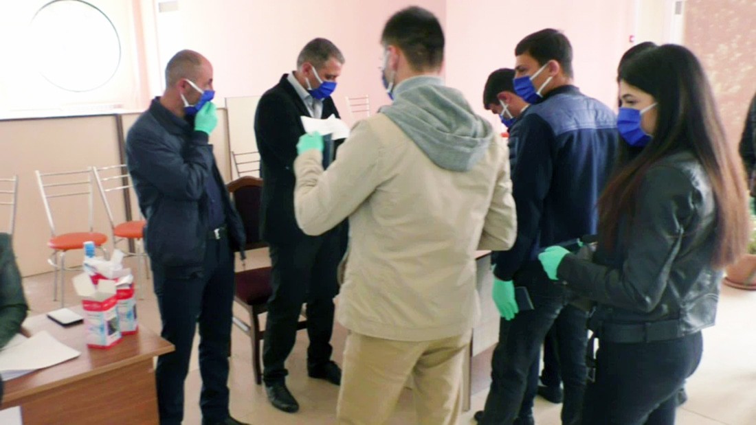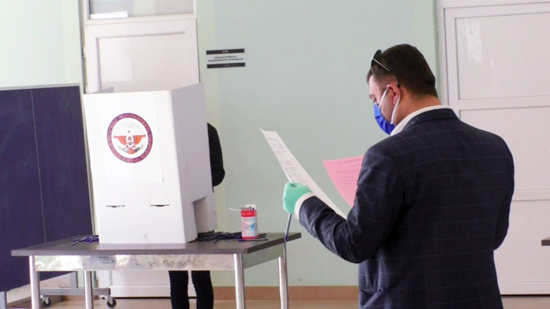Людей не очень много, как я сказал, Шуши город небольшой, но все довольно организованно. При входе надел маску-намордник (это для всех обязательно), живая очередь, показываешь паспорт, выдают два листа, заходишь за барьер, ставишь "галочку", складываешь листки вчетверо и каждый листок бросаешь в свою урну.