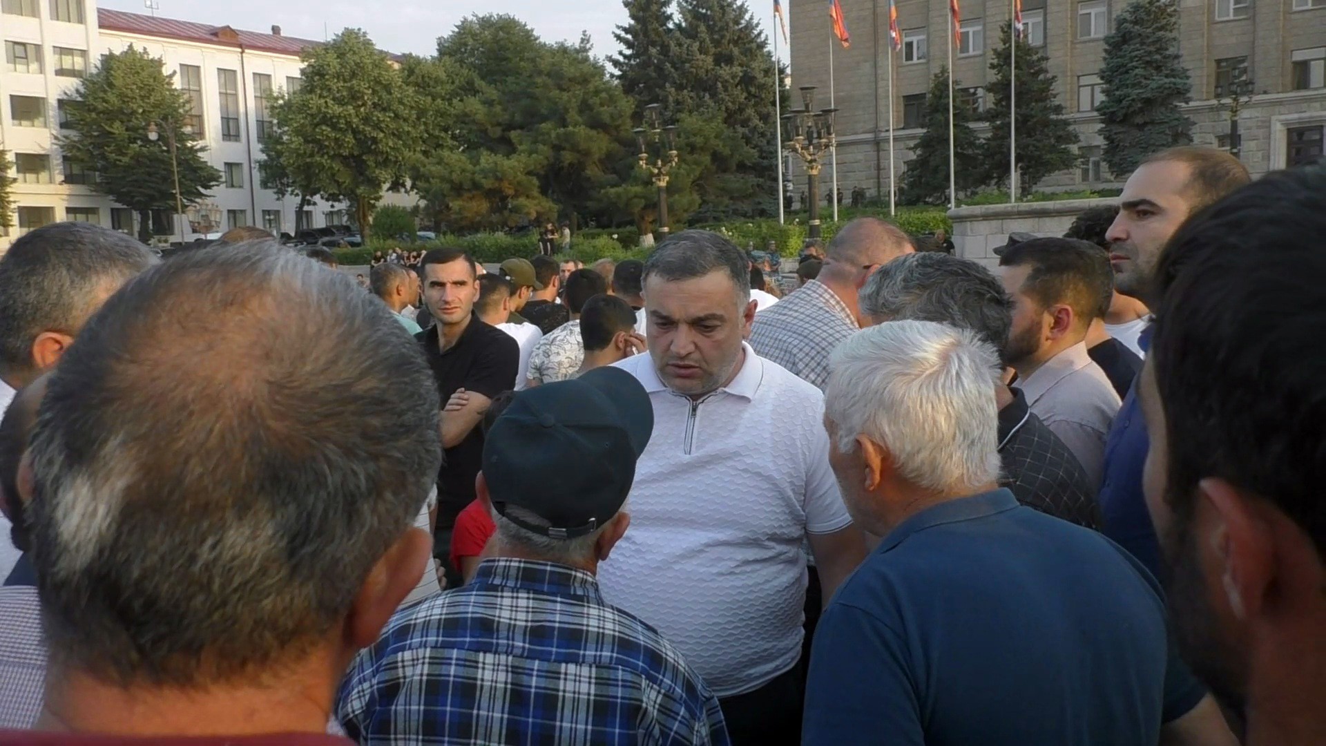 К митингующим вышел мэр Степанакерта и предложил устраивать митинги в другом месте, объяснив свое требование тем, что митингующие мешают остальным гражданам спокойно прогуливаться и отдыхать на площади.